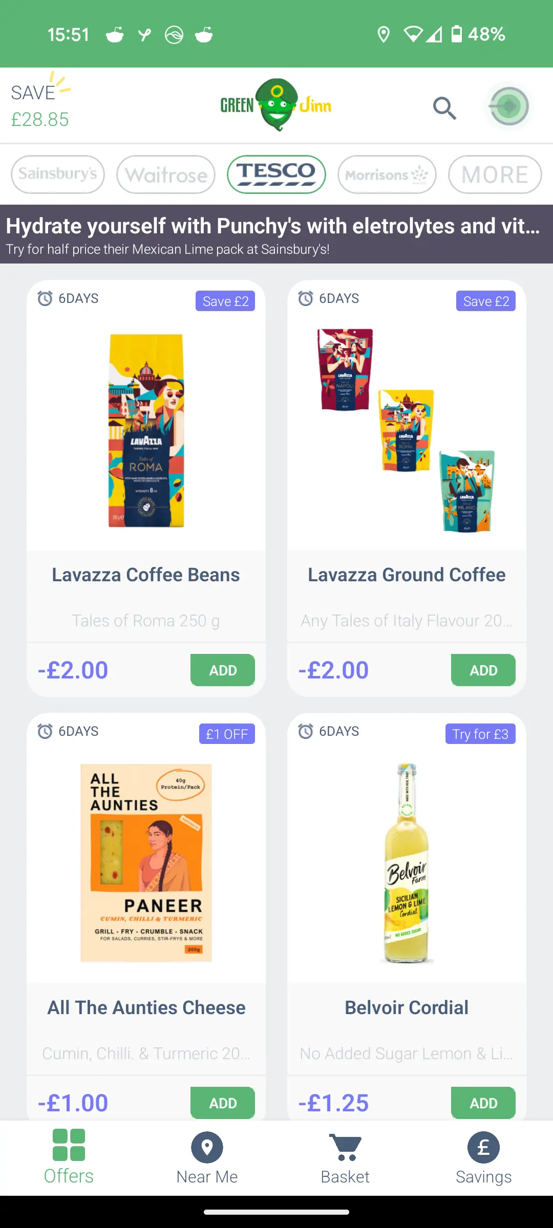 GreenJinn also offers cashback when you buy specific products at the supermarket
